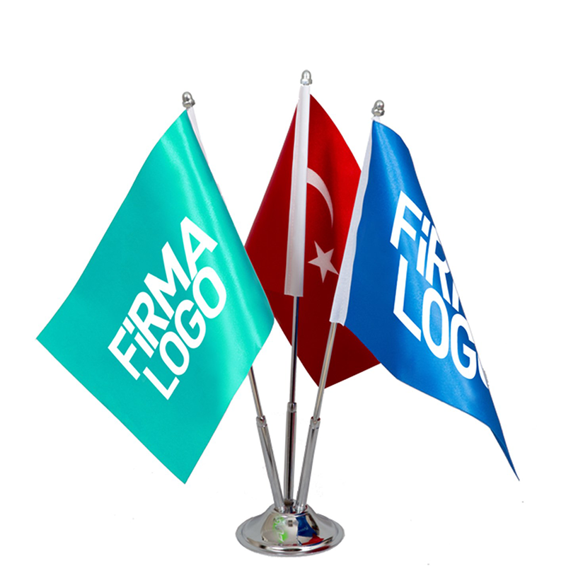 Masa Bayrağı, ofisler, toplantı odaları ve resepsiyon alanlarında markanızı zarif bir şekilde tanıtmak için mükemmel bir promosyon ürünüdür. Yüksek kaliteli saten kumaştan üretilen bu bayrak, firmanızın logosu veya kurumsal sembolleri ile özelleştirilebilir. Kompakt yapısı ve çift taraflı baskı seçeneği sayesinde her açıdan dikkat çekici bir görünüm sunar. Masa bayrağı, kurumsal toplantılarda, resmi etkinliklerde ve çalışma ortamlarında prestijli bir duruş sergileyerek markanızın profesyonel imajını güçlendirir.