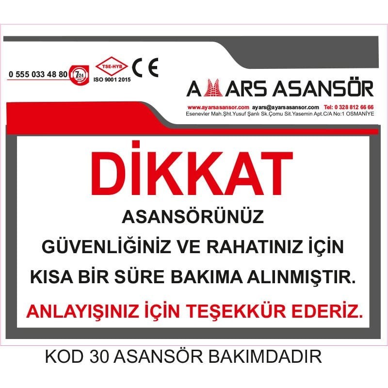İş merkezi, site, otel, hastane veya AVM gibi yoğun kullanım alanlarında Asansör Etiketleri, hem yasal gereklilikleri karşılamanıza hem de ziyaretçileriniz için güvenli bir kullanım alanı oluşturmanıza yardımcı olur. E-ticaret sitemiz üzerinden farklı ölçü, model ve dil seçeneklerine sahip Asansör Etiketleri siparişi verebilir, toplu alımlarda avantajlı fiyatlardan yararlanabilirsiniz. Ürün sayfasında etiket çeşitleri, fiyatları ve teknik özellikleri detaylı şekilde yer alır; dilerseniz kendi logonuz ve metninizle özel tasarım talep edebilir, hızlı üretim ve kargo süreçlerimiz sayesinde asansörlerinizde eksiksiz ve standartlara uygun bir etiketleme sistemi kurabilirsiniz.