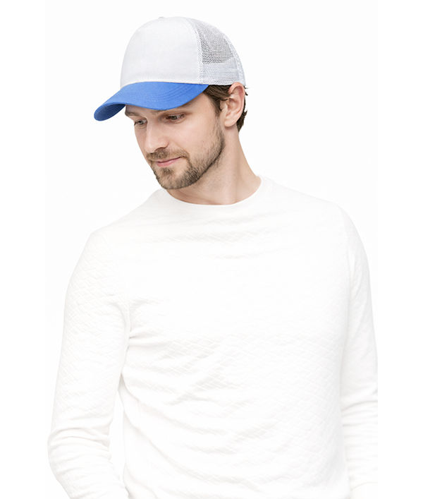 Nefes alan yapısı ve dikkat çeken rengiyle kaliteli fileli beyaz-saks mavi promosyon şapka. Yaz etkinlikleri ve ekip kullanımı için ideal; logo nakış/baskıya uygun.